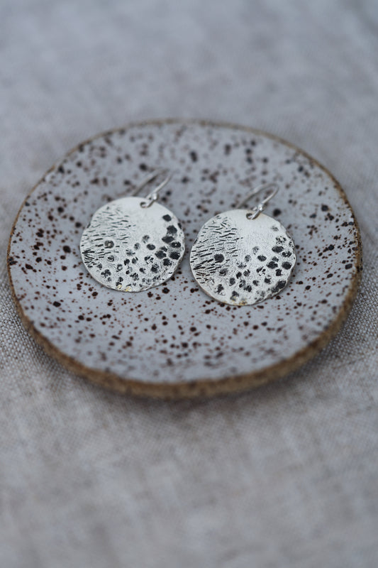 Organically Textured Silver Discs Water's Reflection Wabi-Sabi Circle Earrings, Recycled Silver or Brass hammered texture simple