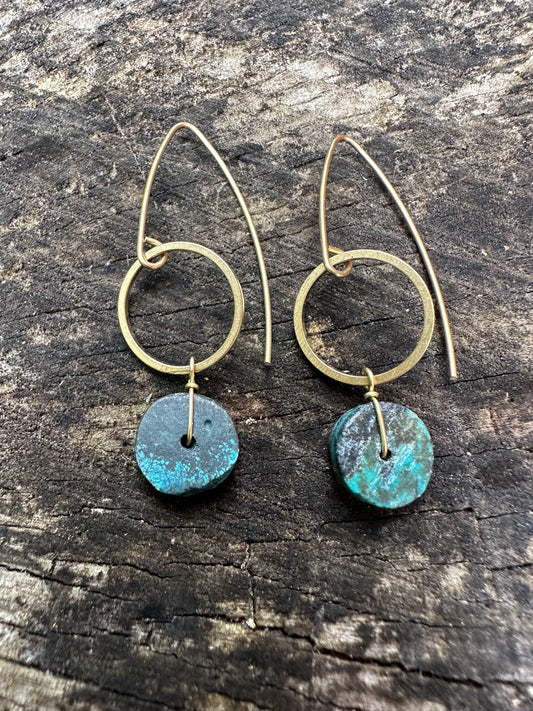 Turquoise hoop earrings | minimalist design with heishi shaped genuine turquoise