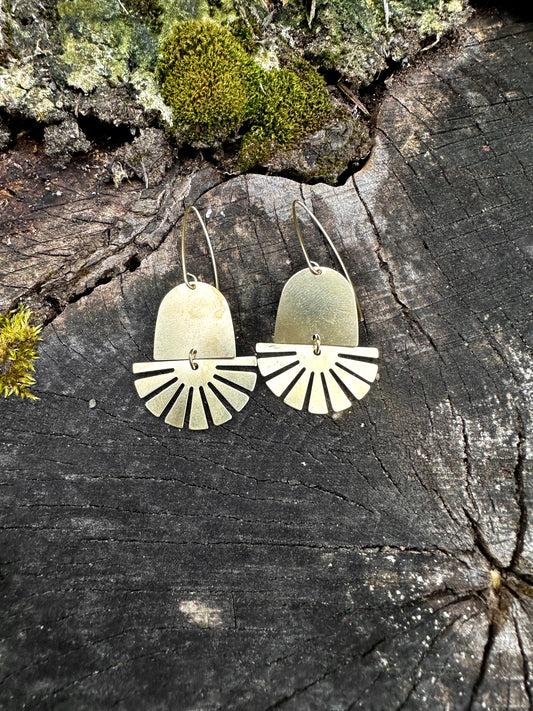Aztec sun, lightweight, solid brass, celestial dangle earrings