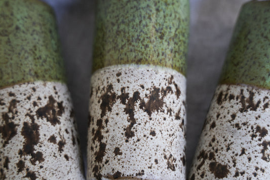 Half Dipped Green Fern Stamped Speckled Stoneware Organic Style Travel Tumbler, To Go Cup, for Minimalists Ceramic Stoneware Hand Thrown in Maine