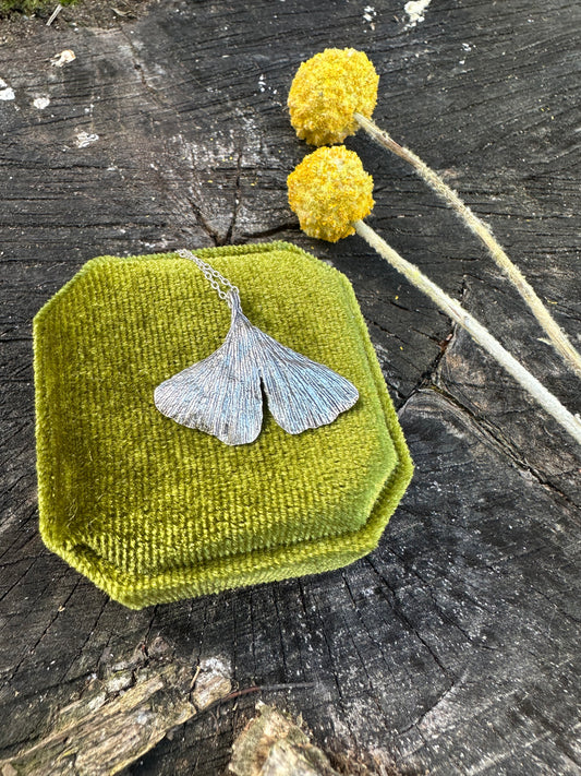 Ginkgo necklace, Gorgeous Solid Silver Handcrafted, Recycled Sterling Silver carved with the lost wac method