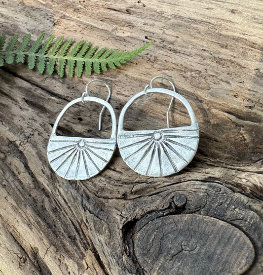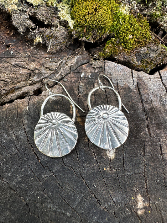 Shine the light sunbeams earrings in recycled sterling silver hand carved