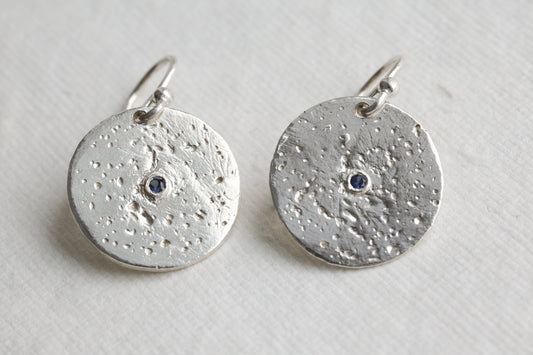 Sapphire texture earrings | Textured circle earrings with wee blue sapphire gemstones