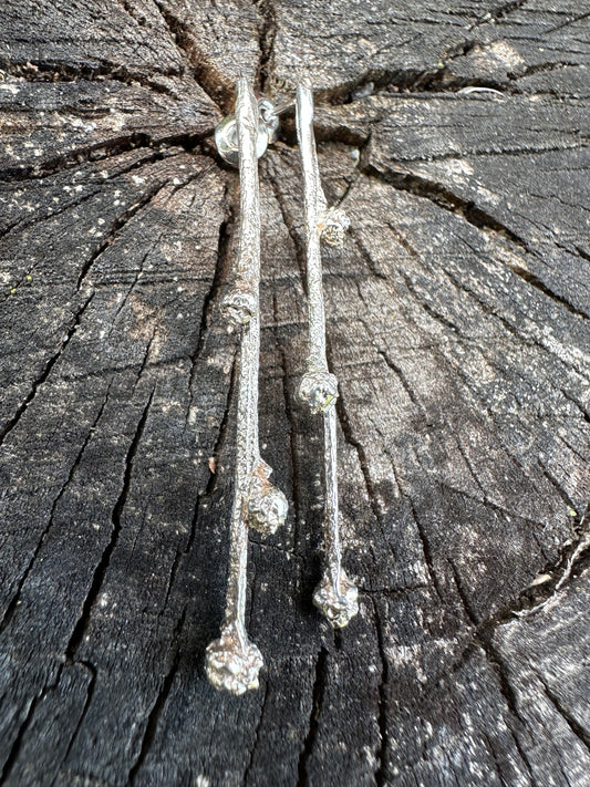 Budding Sprigs, elegant, earthy twig earrings studs with organic textures recycled sterling silver, Maine jewelry