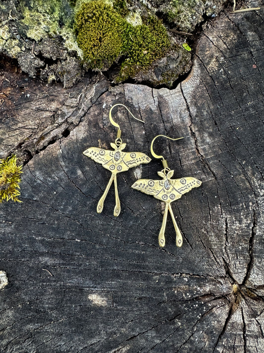 Luna Moth Earrings, Recycled Sterling Silver or Brass, Hand-Carved, Symbol of Transformation