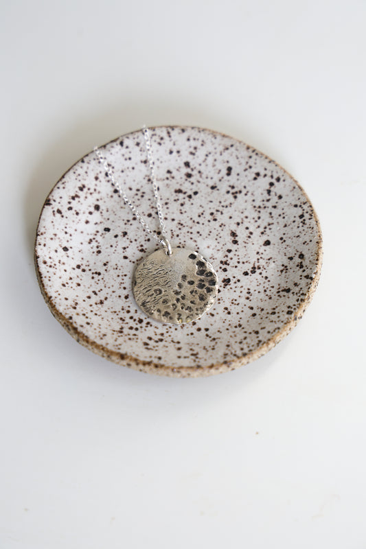 Wabi Sabi, Textured Hammered Disc Inpired by Water Made in Recycled Sterling Silver with Adjustable Chain, Lost Wax Carved Texture