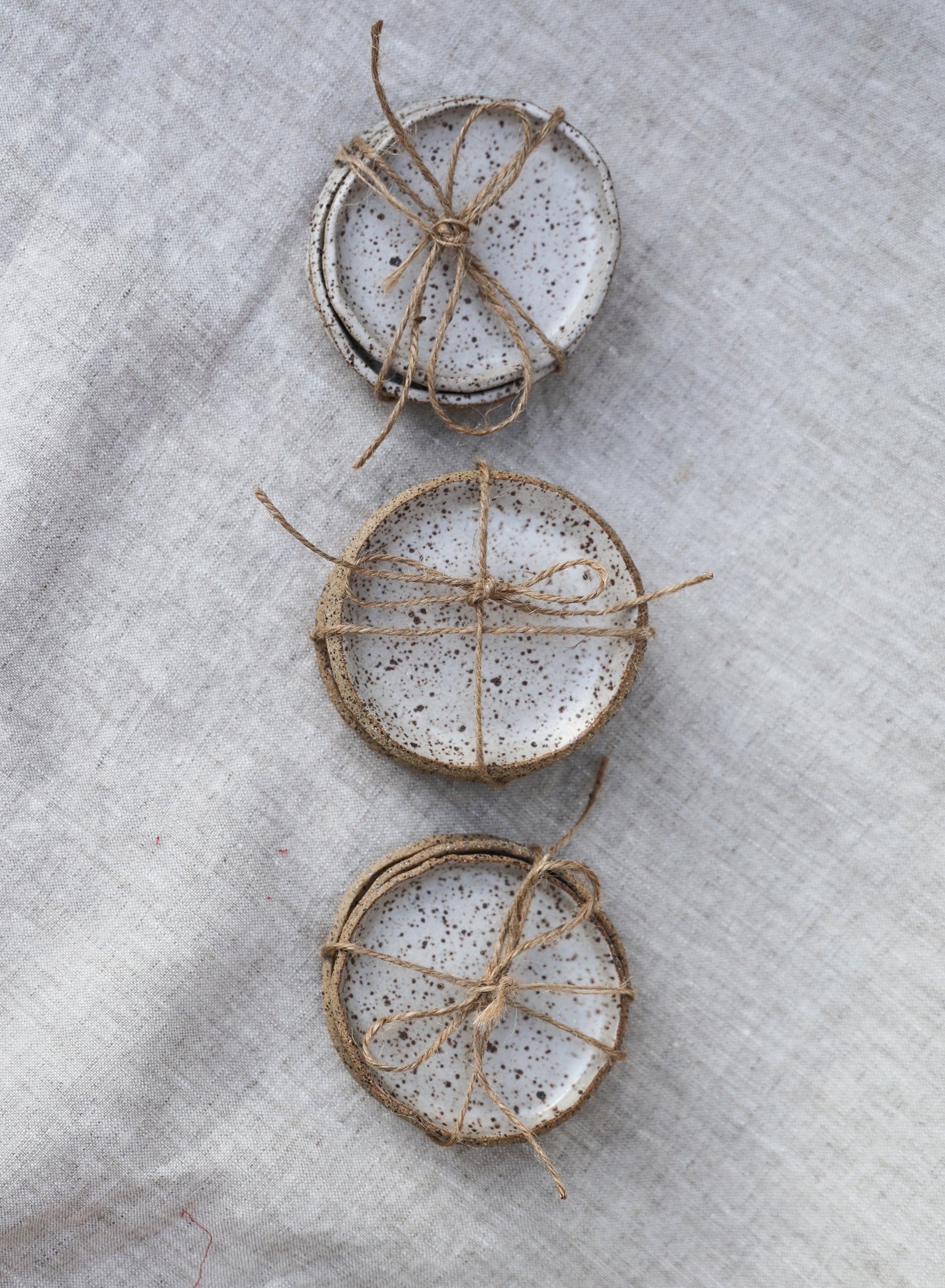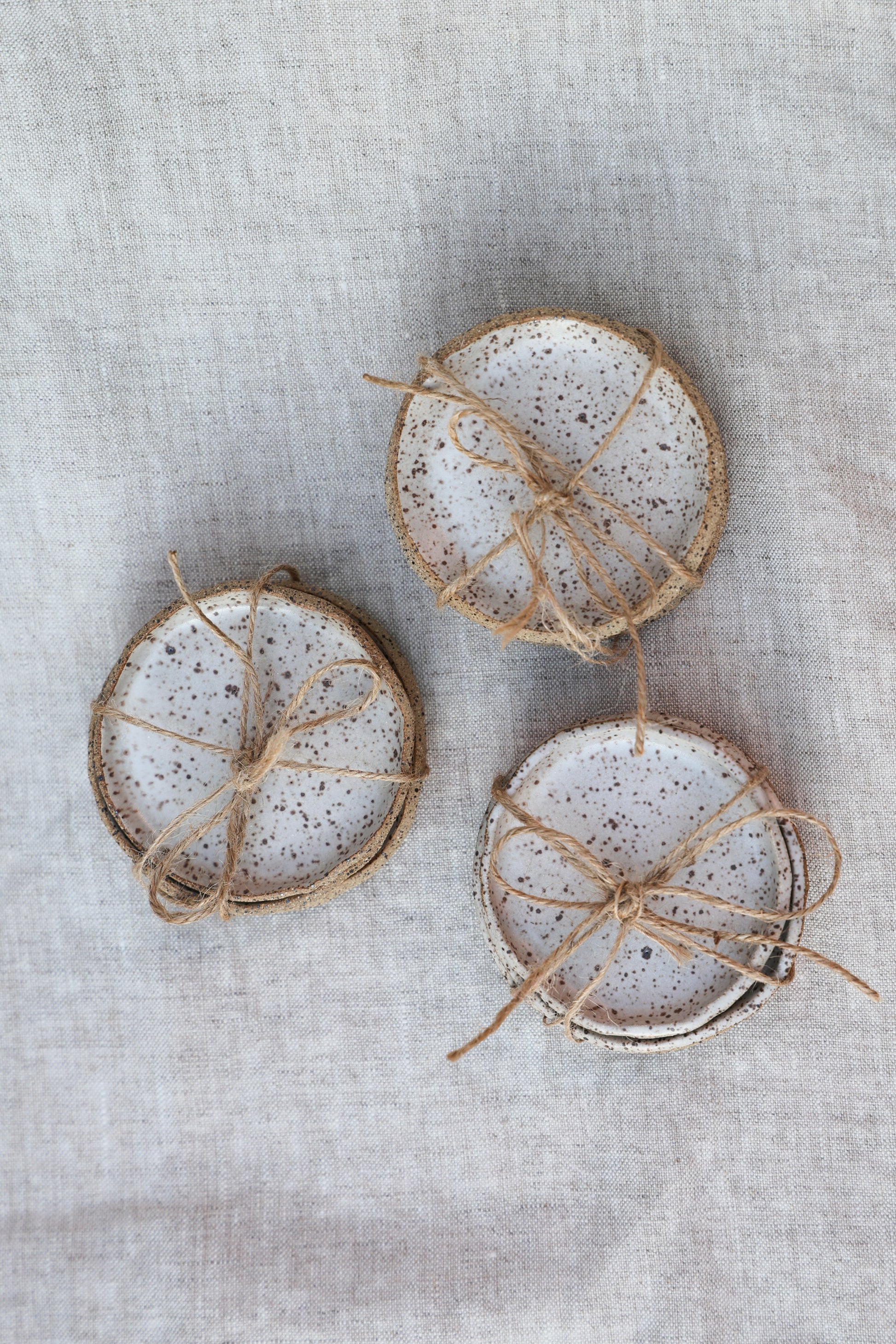 Each dish measures about 3" across and features a soft matte finish that complements the natural clay.