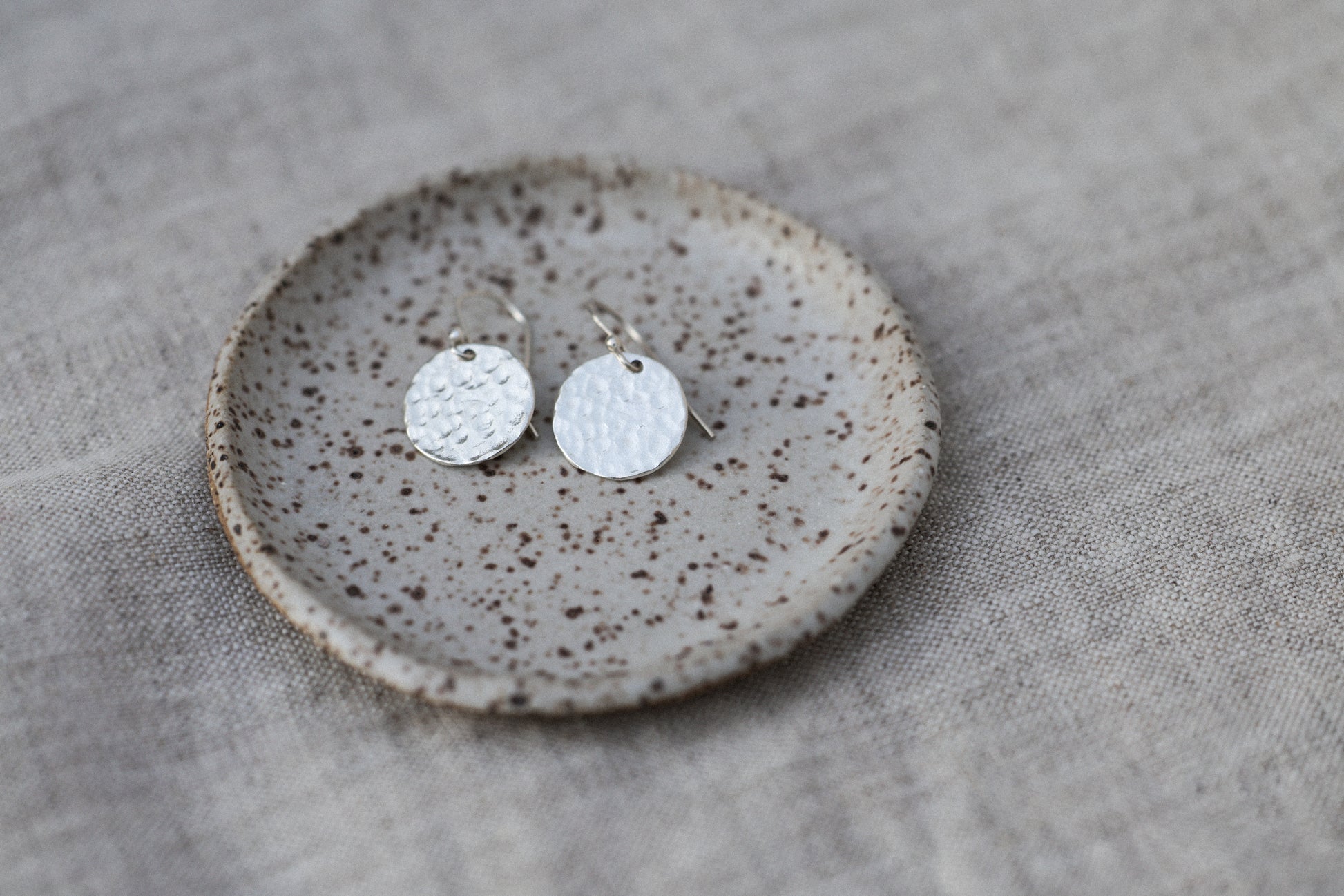 Small Hammered Silver Disc Earrings, Minimalist, Every day, Lightweight Water Earrings