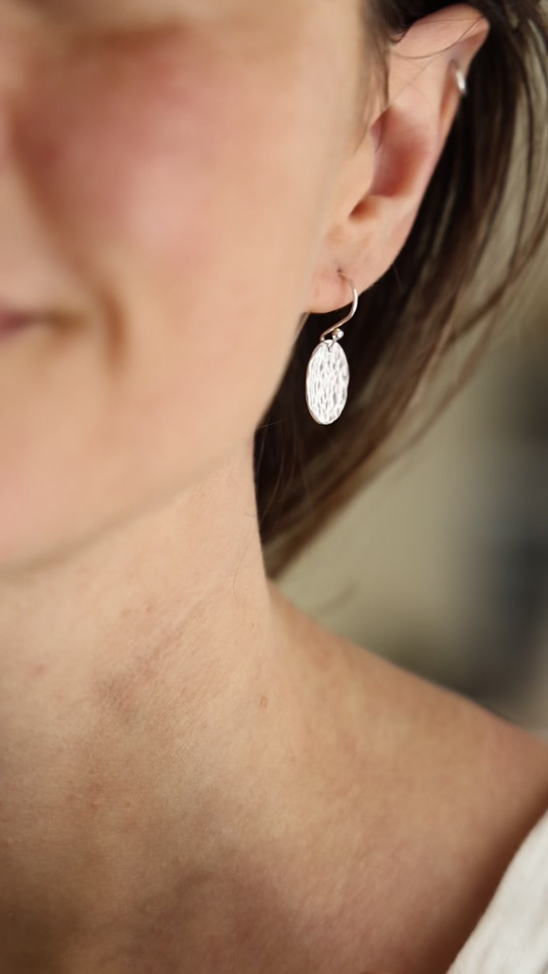 Hand carved here in Maine using the ancient lost wax technique, these earrings have a beautiful hammered texture that catches the light like rippling water. They’re lightweight, minimalist, and go with just about anything — perfect for everyday wear, whether you’re dressing up or keeping it simple.