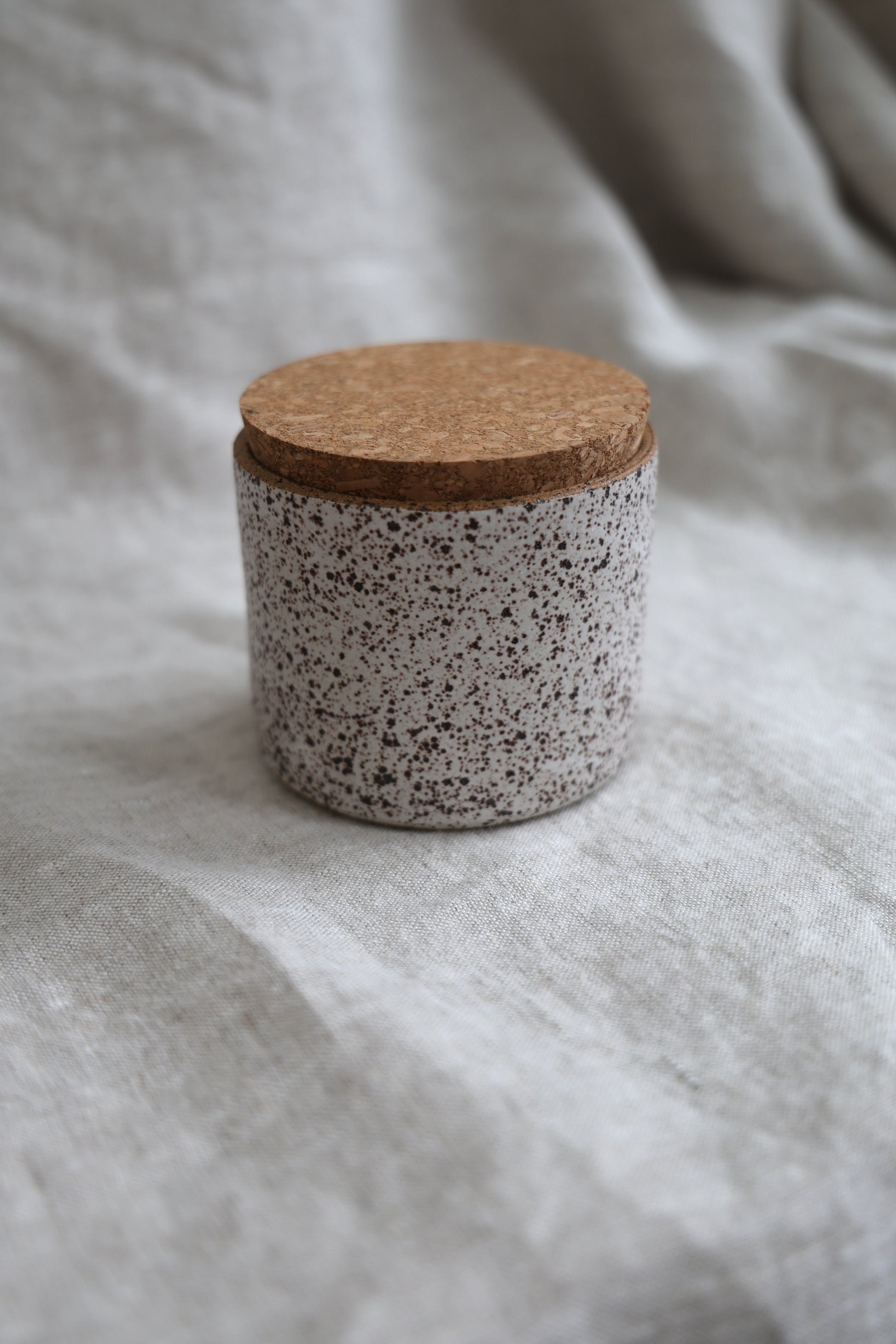 Handmade Ceramic Salt Cellar with Cork Lid – Minimalist Kitchen Storage