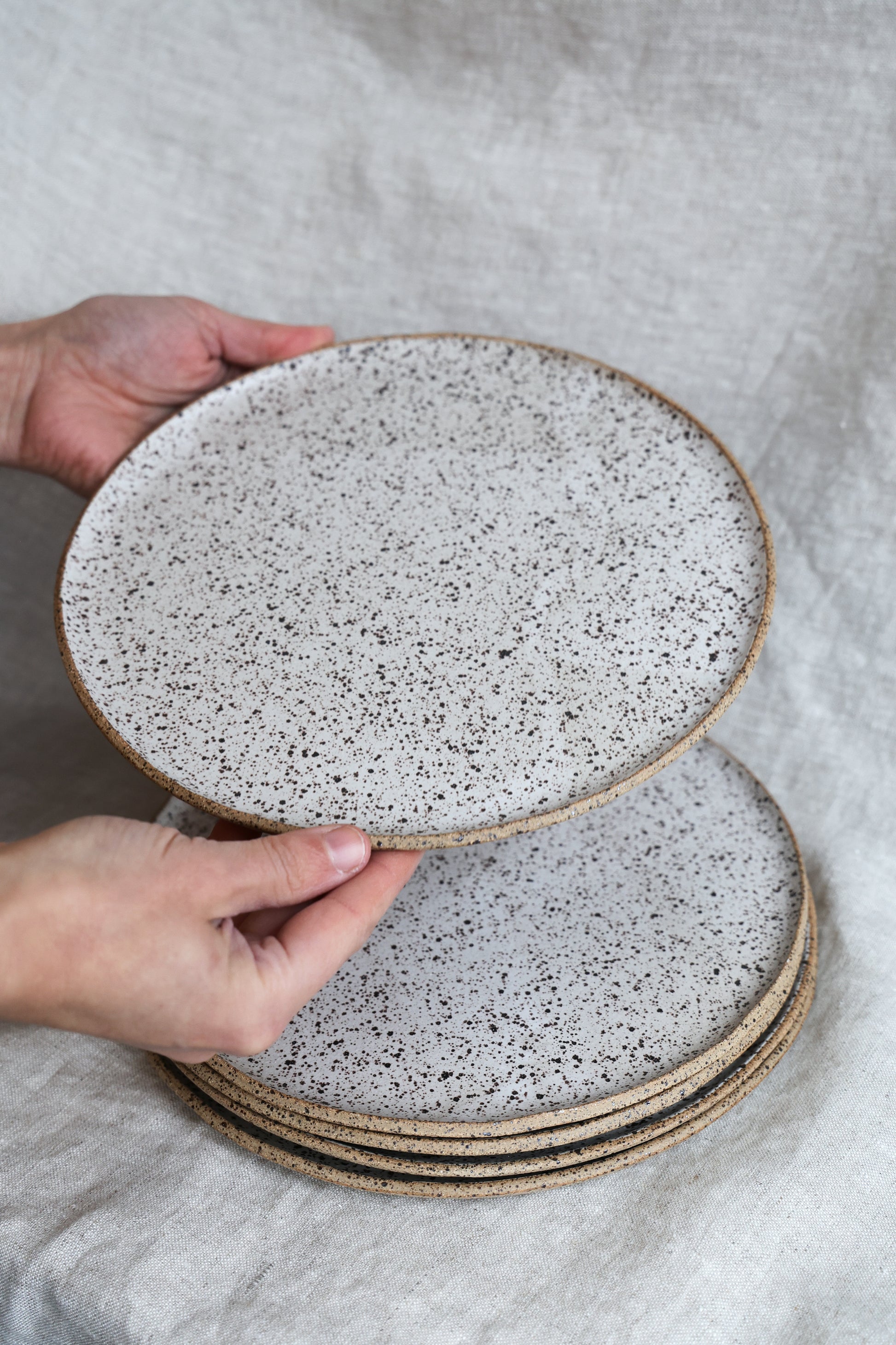 Speckled Matte White Handmade Plates, Minimalist Pottery, Ceramic, Made to Order